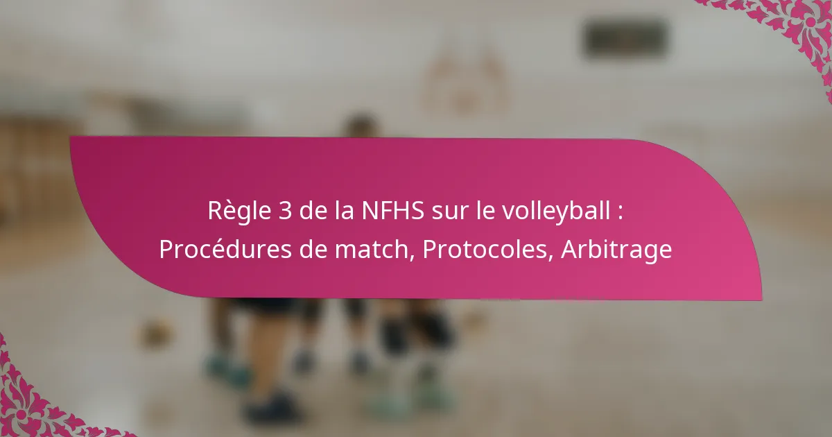 La règle 3 du volleyball NFHS fournit un cadre complet pour les procédures de match, les responsabilités des arbitres et les protocoles essentiels qui facilitent le bon déroulement des matchs de volleyball. En respectant ces directives, les arbitres et les équipes peuvent garantir un jeu équitable et une communication efficace tout au long du match, en répondant aux défis uniques du volleyball au niveau secondaire. Comprendre les règles spécifiques concernant les temps morts et les rôles des arbitres est crucial pour maintenir l’intégrité et le rythme du jeu.